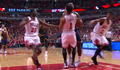 詹姆斯反击踩罗斯脚上崴脚被吹进攻犯规