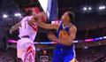 杠上了!波什中投库里突破禁区打成2+