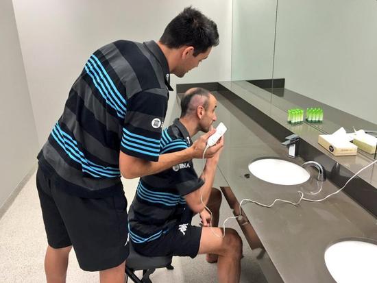 不过有媒体晒出一张照片,图中显示,吉诺比利是在本场比赛赛前不久,请求队里的工作人员帮助他把头发剃掉的。