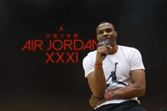 被誉为“反重力装置”的Air Jordan XXXI于9月1日在北京率先全球发售。当日上午,威斯布鲁克来到北京西单的Jordan专门店,与热情的球迷见面,并参加了Air Jordan XXXI的正式发售活动。身为联盟时尚第一人的他对全新战靴的时尚元素也表示赞许:“Air Jordan XXXI在搭载了最新科技,保证了卓越性能的同时,更展现了Jordan品牌对经典和潮流设计的结合。它质感十足的细节和超越球场的气质充满了时尚感。”