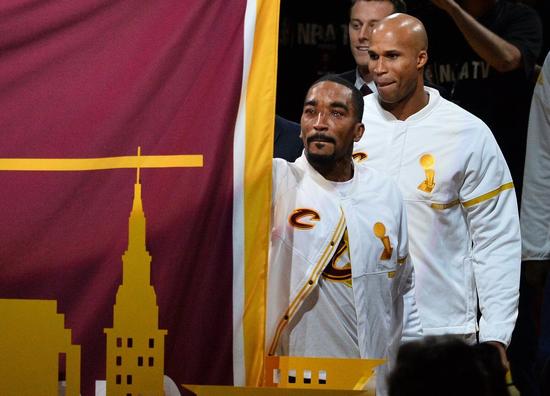 新浪体育讯 北京时间10月26日,NBA2016-17赛季常规赛拉开大幕,卫冕冠军克里夫兰骑士揭幕战亮相,主场对阵纽约尼克斯。而在比赛之前,骑士主场举行了盛大的升总冠军旗帜仪式。那一刻,骑士全队以及整个球馆,仿佛重回4个月前夺冠的那一刻。