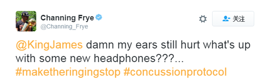 在看到这一动画时,弗莱趁机向詹姆斯小小的抱怨了下:“我的耳朵还很疼,而且还一直在耳鸣。”