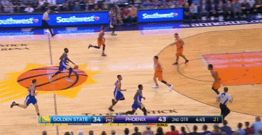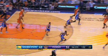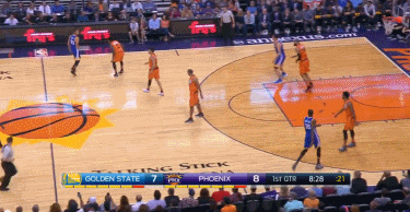 果然,库里开场后的进攻状态非常不错,第一节打了不到4分钟,库里就火力全开,他为勇士队得到了本场的前10分。但是第一节中段,勇士的防守严重崩溃,结果被太阳打出了一波进攻高潮,在这种情况下,库里变得有些着急了。之后,库里在右侧45度角命中了一个球,当时库里先是晃开了布兰顿-奈特的防守,然后再出手命中。但是被库里晃开的奈特试图去封盖库里,结果手不小心打到了库里的头。