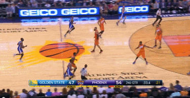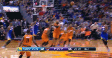 当第二节快要结束的时候,勇士队发动快攻,杜兰特运球大步推进,在过了罚球线之后,他突然起飞,并完成一记大力灌篮,而且还造成太阳的犯规。尽管勇士当时依然比分落后,但是阿杜的这个暴扣大大提升了勇士队的士气,连勇士官方推特也写了一句:“不要伤害到他们(太阳队),KD!”