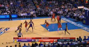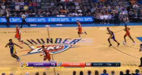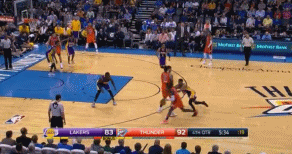 到了关键的第四节,为了帮助雷霆队尽快锁定胜局,威少开启了攻击模式,他的三分命中、快攻暴扣以及欧洲步上篮得分,湖人对此没有任何办法。