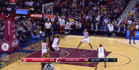 今天骑士主场迎战火箭,詹姆斯在进攻端的欲望看起来并不是很强烈。一方面,詹姆斯从本赛季开始以来似乎有意减少自己的出手次数;另一方面,火箭对詹姆斯的防守也是做了精心的部署,作为当今NBA防守最好的侧翼球员,特雷沃-阿里扎主防詹姆斯。