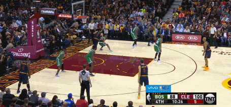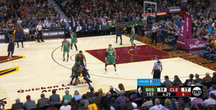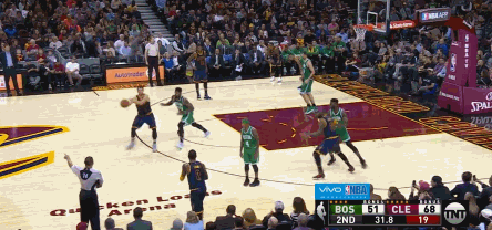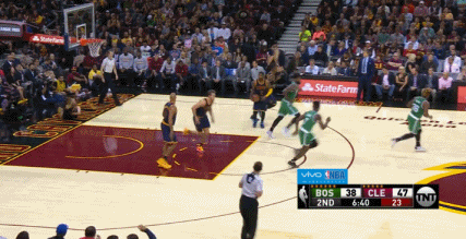 第二节快结束时,欧文面对绿军的杰伦-布朗时完成了一个娴熟的拉球动作,结果布朗被晃开重心,并往后连着退了好几步,可惜欧文随后的跳投没进。