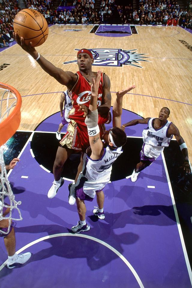 2003年10月30日,18岁零303天的詹姆斯在客场对阵国王一战完成生涯首秀,他当场20投12中拿到25分6个篮板9次助攻,勒布朗也刷新了高中生球员处子秀得分纪录。