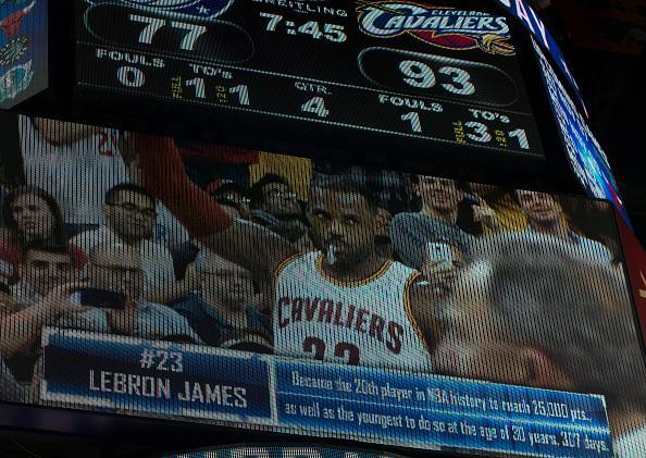 詹姆斯保持着一系列的最年轻纪录,2015年11月3日,骑士客场击败76人,詹姆斯拿到22分,NBA生涯总得分达到25001分,以30岁307天打破科比(31岁151天)保持的NBA历史纪录,成为NBA最年轻25000分先生。