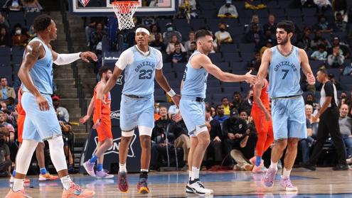 灰熊队用了12名球员,其中9人得分上双,小杰伦·杰克逊的27分为灰熊队领跑。孟菲斯没有了它最好的球员,受伤的后卫贾·莫兰特。