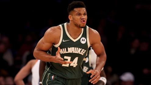 在本节最后1分26秒,雄鹿队以6-1的比分战胜了纽约尼克斯队,在比赛还剩5分49秒时,安特托昆博的一记飘球将优势扩大到19分。