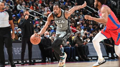尽管杜兰特砍下38分,活塞还是在第三节结束后以91-86领先。第四节开始时,杜兰特在篮网队11-0的进攻中砍下7分。在比赛还剩8分46秒时,他得到了自己的第五次犯规,但他没有上场,而篮网队在本节中段将领先优势扩大到105-92。