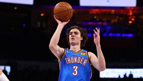 “⛈️17分,13篮板,14助攻,4抢断⛈️@joshgiddey成为NBA历史上最年轻的三双球员!#”
