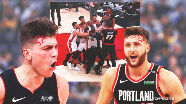 周三晚上开拓者对阵热火,开拓者队的巴特勒和利拉德都缺席比赛,但是这场比赛还是很有看点。因为泰勒·赫罗和尤瑟夫·努尔基奇在四节发生了肢体冲突。