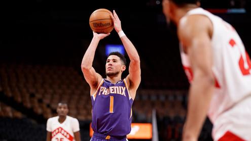 布克的罚球很重要,太阳队以99-95赢得了比赛。猛龙吉祥物的目的没有达成。