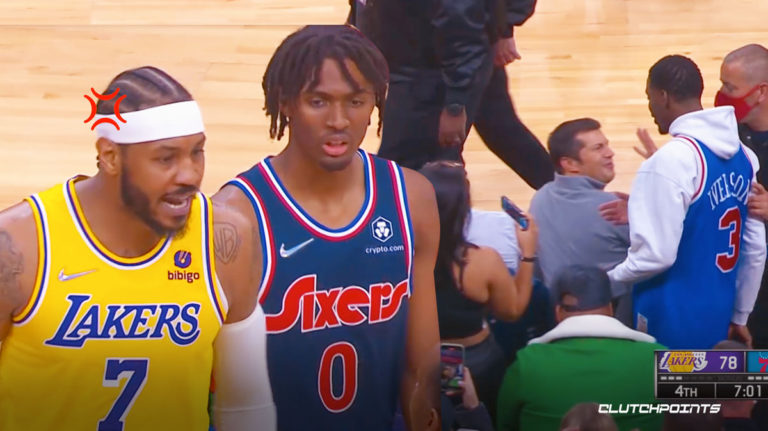 比赛中湖人在第四节落后16分,而安东尼被乔治·尼昂犯规,被裁判吹哨后,76人球迷似乎说了什么,安东尼冲过去,随即双方发生语言冲突。