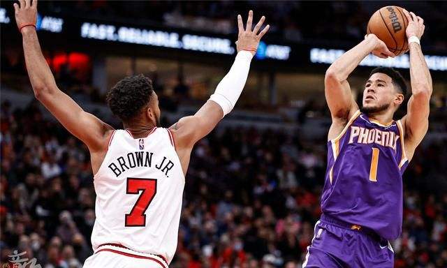 美联社报道:德文·布克得到38分,nba领先的菲尼克斯太阳队在周一晚上以127-124击败芝加哥公牛队。
