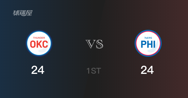 首节结束,76人以24-24战平雷霆,第二节再战。
