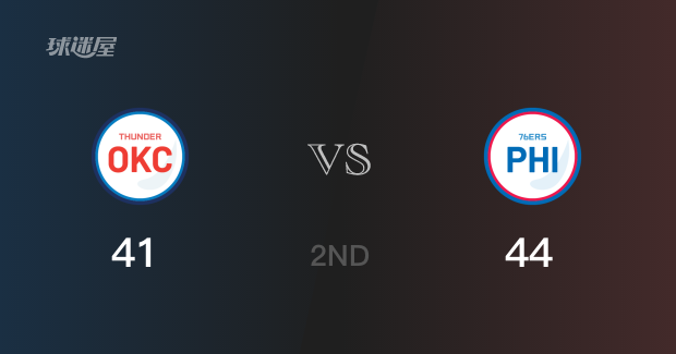半场结束,76人以44-41领先雷霆3分,第三节再战。