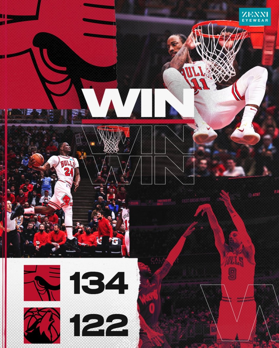 134-122公牛战胜森林狼 德罗赞砍下全队最高的35+6+6+1