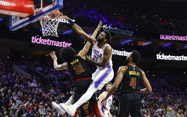 至于上半场恩比德12中7,其中三分3中3,外加罚球8中7,狂轰24+5+6的数据。恩比德在比赛第二节的时候,对骑士的内线球员艾伦进行隔扣,全场轰动。
