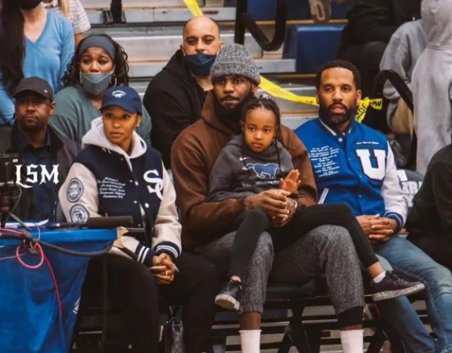 在昨天的时候,湖人休战日,詹姆斯带着妻子和女儿去观看大儿子布朗尼的高中比赛。