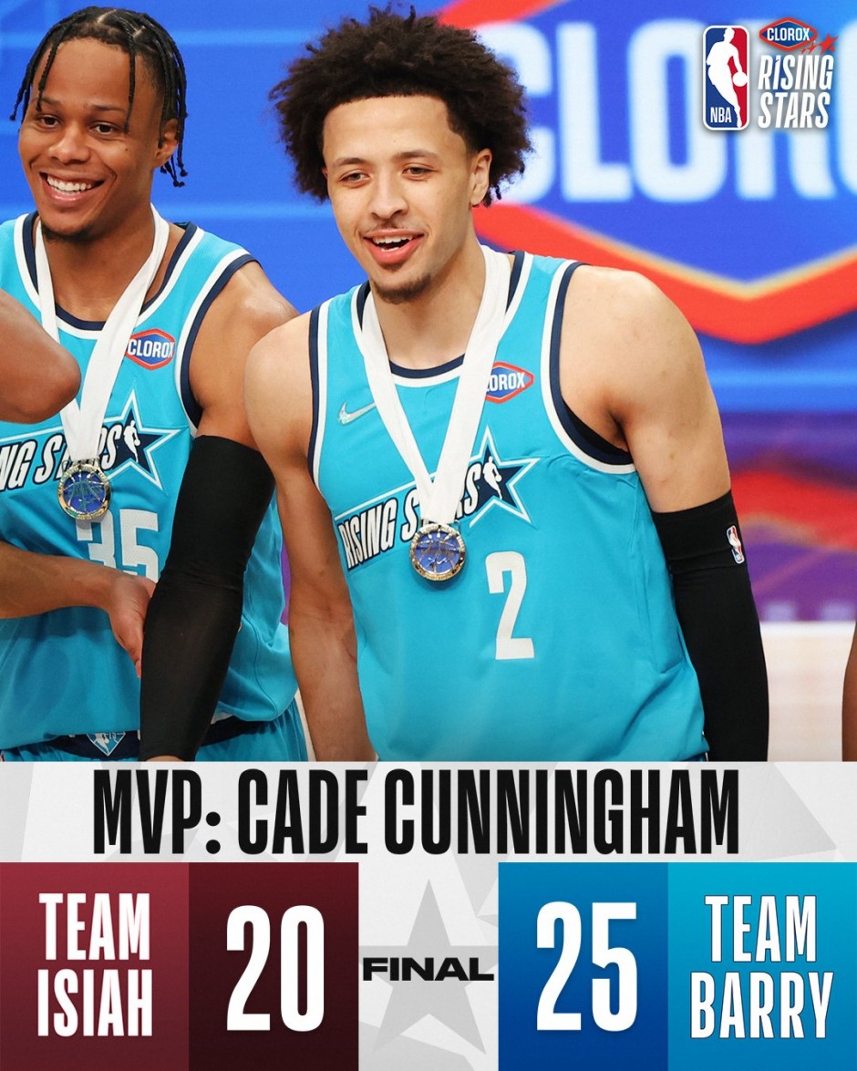 相信最近有不少球迷们都关注了2022NBA全明星新秀挑战赛决赛,而在这次比赛中,巴里队以25-20战胜托马斯队,成为最终的胜者。坎宁安成为全明星新秀挑战赛MVP。