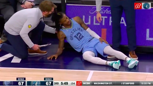 本文灰熊队球星贾·莫兰特因伤退出 楼梯摔倒第三节离开比赛是由球赛吧通过来源:外网翻译更新,更多篮球新闻尽在www.qiusaiba.com