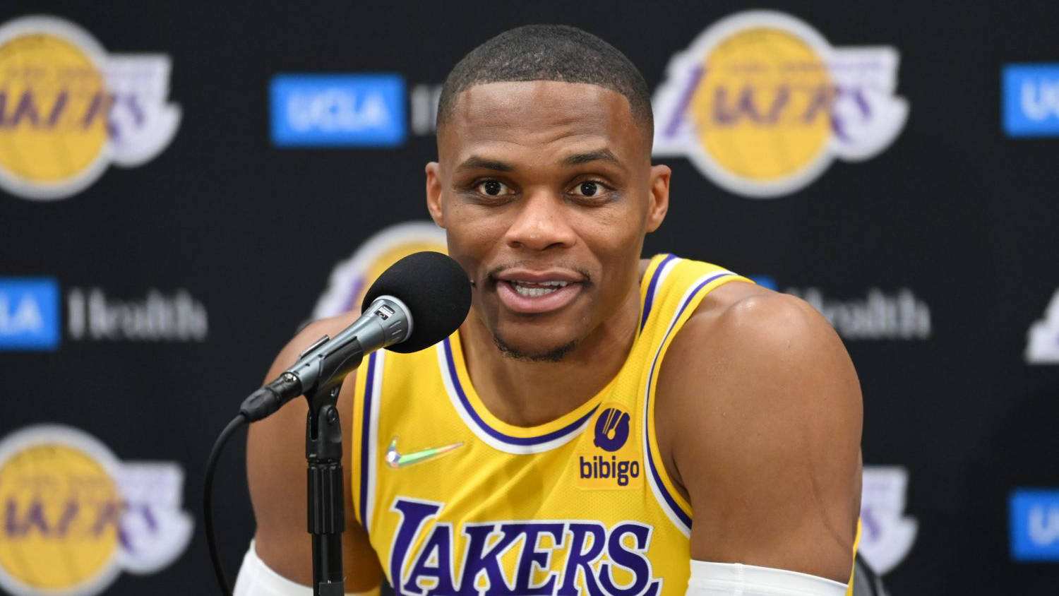 拉塞尔·威斯布鲁克被问到一个复杂的问题,根据好莱坞发给他的剧本,他在湖人队的第一个赛季为什么没有结束?可以肯定地说,他不喜欢报道中所说的“想象”的话: