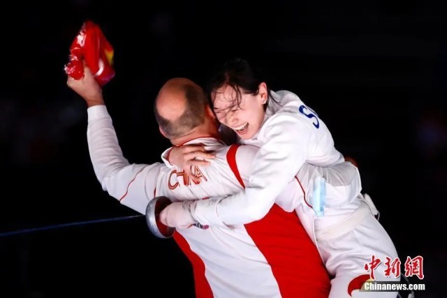 那一年,决一剑,一剑封喉。东京奥运会女子重剑个人赛决赛,孙一文以11:10绝杀罗马尼亚老将波佩斯库,夺得冠军。当她怒吼庆祝时,场下的法国教练欧伯利推开挡板、高举双臂冲向了自己的爱徒。充满激情的法国教头一把将孙一文扛起,一路小跑的同时继续振臂高呼。
