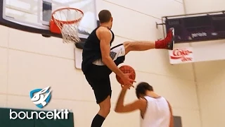 白人变态扣将最新力作:飞跃一人360度胯下扣篮