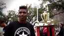 1米78火箭人Sir Issac震撼扣篮赢得休斯顿火箭柏油路扣篮大赛